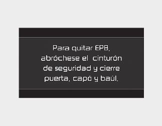 Si intenta conducir pisando el pedal del acelerador con el EPB accionado, pero no se libera automáticamente, se emitirá una advertencia una vez y aparecerá un mensaje.