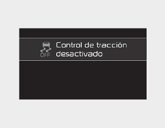 Pulse el botón ESC OFF durante más de 3 segundos. El testigo indicador ESC OFF se encenderá, aparecerá un mensaje y sonará una señal acústica de aviso de ESC OFF. En este estado, la función de control del motor y la función de control de los frenos no están operativas. En otras palabras, la función de control de estabilidad del vehículo no está operativa.