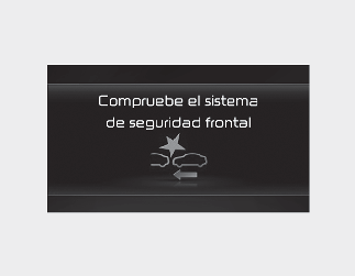 Cuando la asistencia de prevención de colisión frontal no funciona correctamente, aparecerá el mensaje de advertencia "Check Forward Safety system" (Verificar sistema de seguridad frontal) (desaparece después de cierto tiempo) y los testigos de advertencia y se encenderán en el tablero. Kia recomienda visitar un centro de servicio/distribuidor Kia autorizado.
