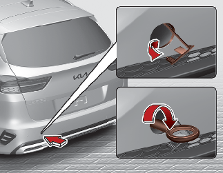 Abra el portón trasero y extraiga el gancho de remolque de la caja de herramientas.