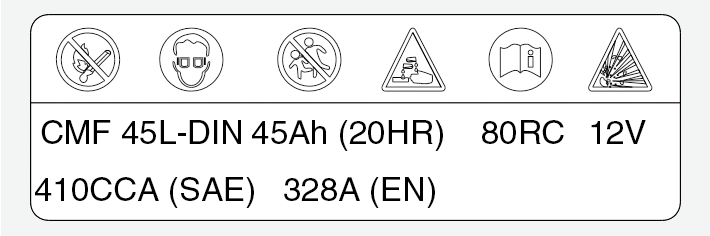 CMF 45L-DIN: nombre del modelo de la batería Kia