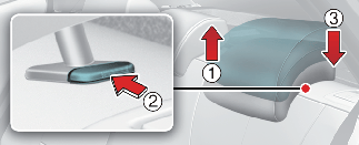 لرفع مسند الرأس، اسحبه لأعلى للوضع المطلوب (1). لخفض مسند الرأس، ادفع مع الاستمرار زر التحرير (2) بدعامة مسند الرأس، ثم اخفض مسند الرأس للوضع المطلوب (3).