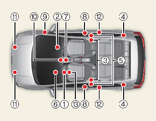 وفي حالة حدوث أي من الحالات الآتية، فهذا يشير إلى وجود خلل في نظام الأمان الإضافي (SRS). في هذه الحالة، افحص النظام لدى ورشة متخصصة. تُوصي Kia بزيارة أحد شركاء خدمة/وكلاء Kia المعتمدين.