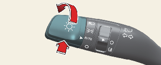 عند سحب ذراع المصباح الأمامي نحوك أثناء تشغيل الضوء العالي من خلال مساعد الضوء العالي، سيُشغل الضوء المنخفض وسيتوقف تشغيل الوظيفة.
