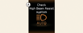 عندما لا يعمل مساعد الضوء العالي بشكل صحيح، ستظهر رسالة تحذير ويضيء مصباح التحذير (