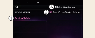 عندما تكون السيارة قيد التشغيل، حدد إعدادات المستخدم ← مساعدة السائق ← أمان الركن ← الأمان الخلفي من حركة المرور التقاطعية من قائمة إعدادات المستخدم أو إعداد ← السيارة← مساعدة السائق ← أمان الركن ← الأمان الخلفي من حركة المرور التقاطعية من شاشة نظام الترفيه والمعلومات لتشغيل مساعد تجنّب الاصطدام الخلفي بحركة المرور التقاطعية.