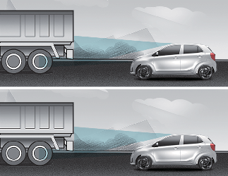 كما قد تنخفض سرعة السيارة بسرعة عند الاكتشاف المفاجئ لمركبة أو مركبة ذات عجلتين تعمل بالطاقة أو أحد المشاة أو راكبي الدراجات.