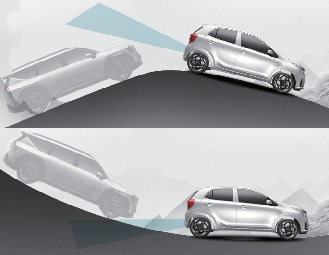 قد لا يعمل نظام المساعدة على تجنب الاصطدام في المنطقة المحجوبة على نحو صحيح عند القيادة على منحدر. قد لا تكتشف الوظيفة المركبة الموجودة بالحارة المجاورة أو قد يكتشف الأرض أو المبنى بطريق الخطأ.