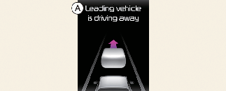 عندما تغادر سيارة تم اكتشافها أمامك من نقطة وقوف، سيُخطر إنذار مغادرة المركبة الأمامية السائق بعرض رسالة التحذير على لوحة العدادات وسيصدر تحذير صوتي.
