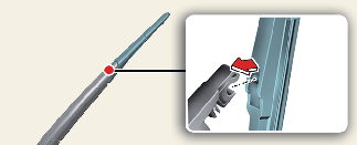 قم بتركيب مجموعة الريشة الجديدة بإدخال الجزء المركزي في الفتحة الموجودة بذراع الماسحة حتى يستقر في مكانه.