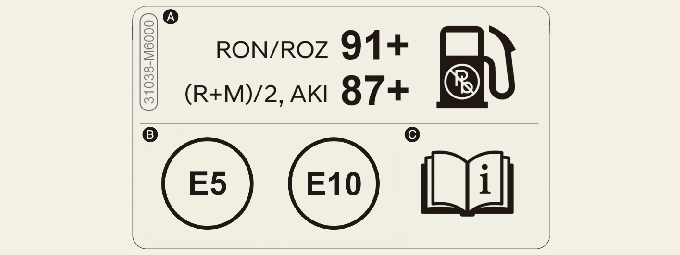 ملصق الوقود مرفق بباب فتحة ملء الوقود.