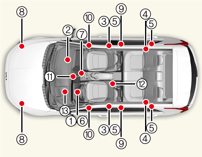 如發生下列任何情況,代表 SRS 故障。在此情況下,讓專業的保養廠檢查系統。Kia 建議諮詢授權的 Kia 經銷商/服務合作夥伴。