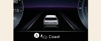 提示音將響起,並顯示滑行指引指示燈,以根據導航系統中存儲的駕駛路線和道路狀況的分析預測減速事件*,從而提示駕駛員何時鬆開油門踏板。這樣可提醒駕駛員將腳從踏板上移開,僅透過 EV 電機沿道路滑行。這有助於防止不必要的燃油消耗並提高燃油效率。 * 減速的例子有沿著延伸的山坡下行,減速駛近收費站,以及靠近減速區。