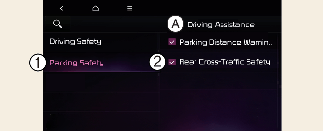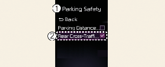 隨著車輛啟動,如果從資訊娛樂系統畫面觸碰設定→駕駛協助→停車安全→後方橫向安全使用者設定功能表或選擇設定→車輛→駕駛協助→停車安全→後方橫向安全在資訊娛樂系統螢幕上開啟後方橫向防撞輔助。