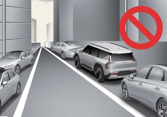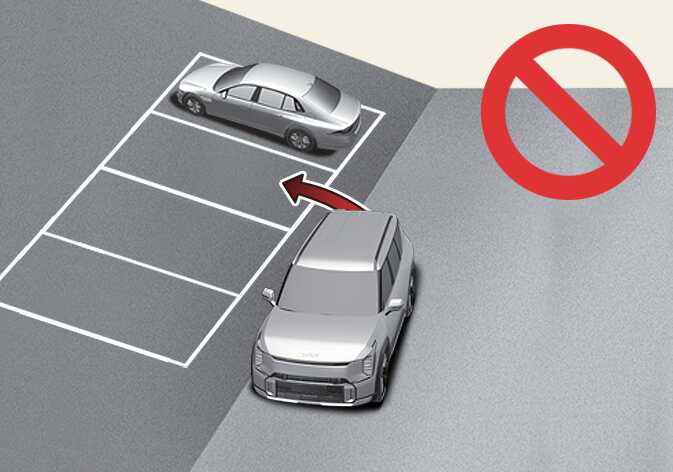 如果使用遙控智慧停車輔助,當在一側有車輛的停車格停車時,您的車輛可能會越過停車線以避開停放的車輛。 |