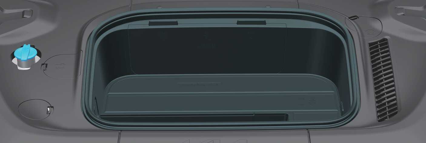 打開/關閉前行李箱 OMV053241L 操作 透過按下位於防震墊上的引擎蓋解鎖按鈕或按下智慧鑰匙上的引擎蓋解鎖按鈕打開引擎蓋,使用前行李箱。 如果想了解更多打開/關閉引擎蓋的詳細資訊, 引擎蓋停用。 使用前行李箱後關閉引擎蓋。