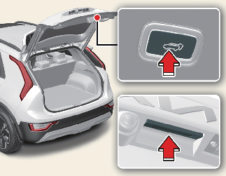 Εάν το όχημα είναι κλειδωμένο, πατήστε το ηλεκτρικό κουμπί ανοίγματος/κλεισίματος της πίσω πόρτας έξω από το όχημα με το έξυπνο κλειδί που έχετε στην κατοχή σας.