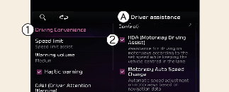Ρυθμίσεις της Υποβοήθησης οδήγησης σε αυτοκινητόδρομο (Highway Driving Assist)