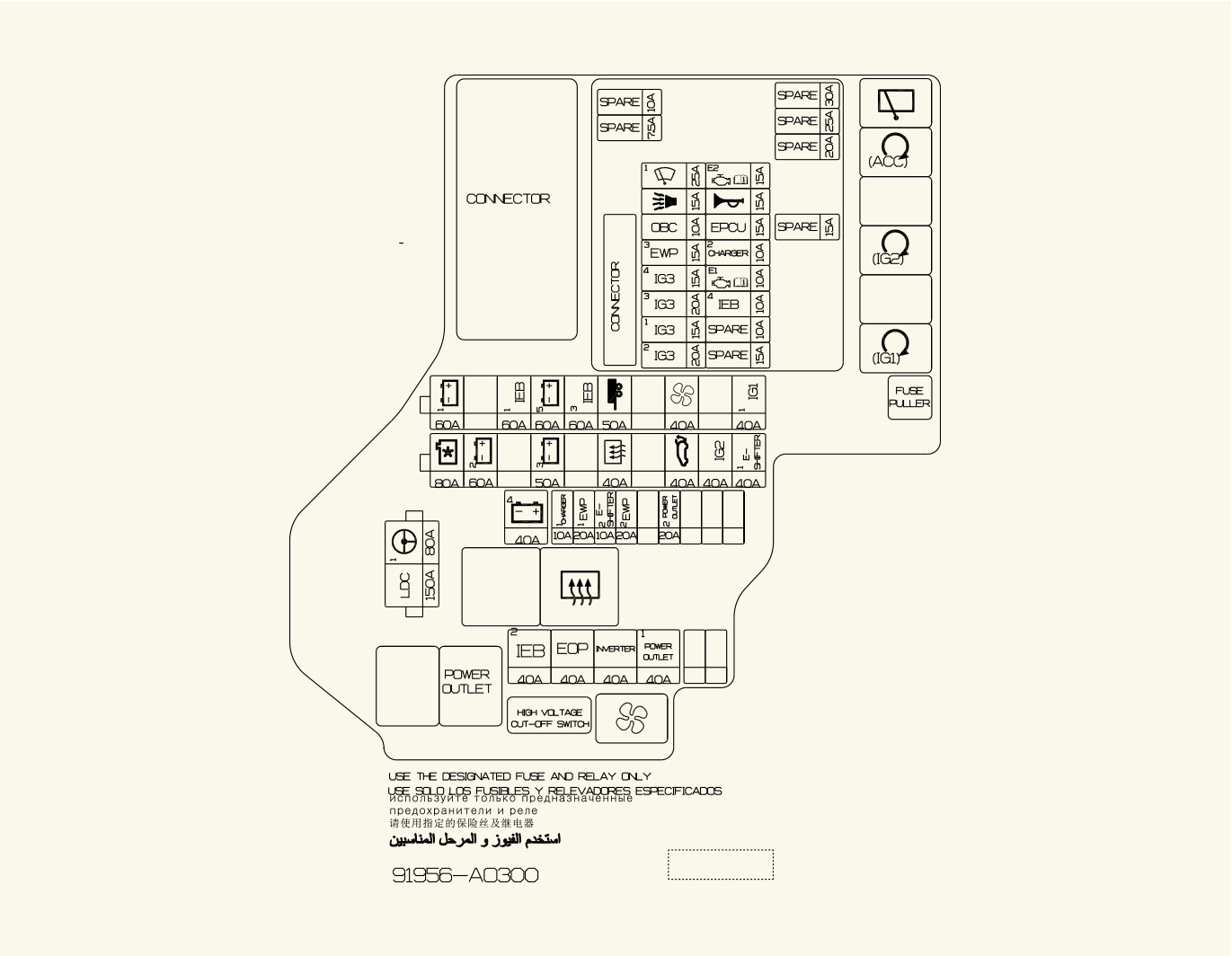 Μπλοκ διακλάδωσης ICU (Ρελέ μανδάλωσης μακράς διάρκειας φορτίου, ασφάλεια: IAU, ECS, BATTERY MANAGEMENT, AIR BAG2, MEMORY1, SPARE3 (B+), A/C2, E-CALL, IBU1, BRAKE SWITCH, MULTIMEDIA, DOOR LOCK, MODULE1) |
