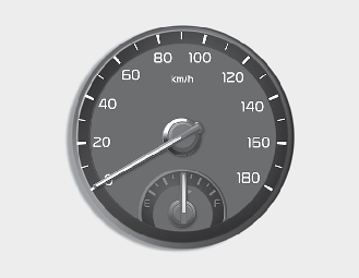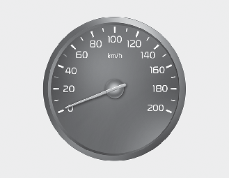 The speedometer indicates the speed of the vehicle and is calibrated in kilometers per hour (km/h).