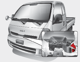 WARNINGOpen the hood after turning off the engine on a flat surface, shifting the shift lever to the P (Park) position for Automatic Transmission and to the 1st(First) gear or R (Reverse) for Manual Transmission, and setting the parking brake.