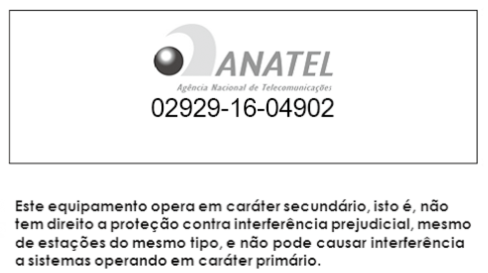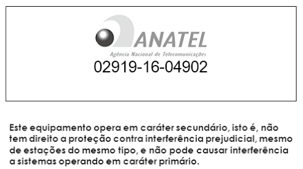 "Este produto está homologado pela ANATEL, de acordo com os procedimentos regulamentados pela resolução nº . 242/2000 e atende aos requisitos técnicos e aplicados"