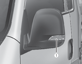 If the side repeater lamp (LED type) (1) is not functioning, please have your vehicle inspected by a professional workshop. Kia recommends to visit an authorized Kia dealer/service partner. The LED lamp cannot be replaced as an individual component since it is an integrated unit. Instead, the entire LED lamp unit must be replaced.