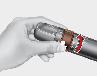 미등을 켠 상태에서 안개등 스위치(1)를 돌리면 안개등이 켜지며, 다시 스위치를 돌리면 안개등이 꺼집니다.