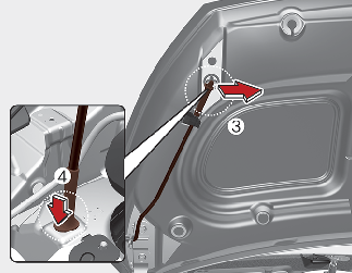지지대(3)를 분리한 후 지지대 끝단을 후드 지지대 홈에 넣어(4) 확실히 고정시키십시오.