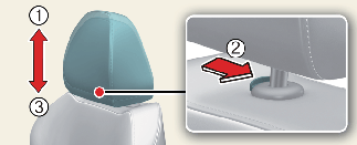 يمكن ضبط وتعديل مسند الرأس إلى الأمام إلى 3 أوضاع مختلفة بسحب مسند الرأس إلى الأمام إلى وضع التوقيف المطلوب. لضبط مسند الرأس إلى أبعد موضع للخلف، اسحبه كليا للأمام لأبعد موضع ثم حرره.