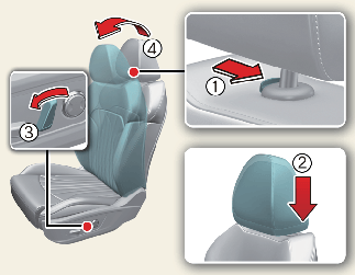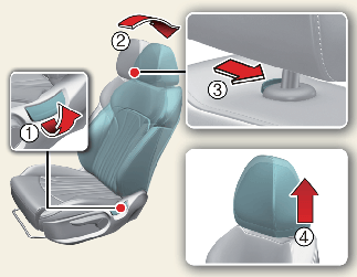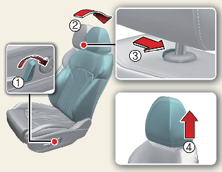 اضغط على زر تحرير مسند الرأس (3) بينما تحرك مسند الرأس لأعلى (4).