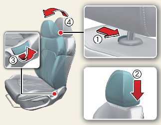 إذا أملت ظهر المقعد نحو الأمام أثناء رفع مسند الرأس ووسادة المقعد، فقد يلامس مسند الرأس حاجب الشمس أو أجزاء أخرى بالسيارة.