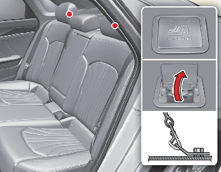 توجد الحوامل الخطافية لنظام تثبيت مقاعد الأطفال في درج المجموعة.