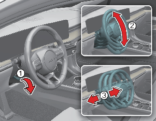 تتيح إمكانية إمالة وزيادة طول ذراع عجلة القيادة ضبط عجلة القيادة قبل قيادة السيارة. ويمكنك أيضًا رفعها لإعطاء القدمين مجالاً أوسع عند الدخول في السيارة والخروج منها.
