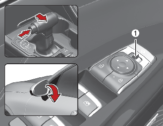 اضغط على نقطة مماثلة في مفتاح التحكم في ضبط المرآة (2) لضبط وضع المرآة المحددة للأعلى أو للأسفل، ويمينًا أو يسارًا.