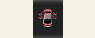 الباب، غطاء المحرك، صندوق السيارة، فتحة السقف في وضع الفتح