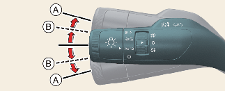 حرك ذراع مؤشر الانعطاف قليلاً واستمر في الضغط عليه في الموضع (ب).