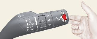 اسحب الذراع برفق تجاهك لرش سائل الغاسلة على الزجاج الأمامي ولتشغيل المساحات بمقدار يتراوح من دورة إلى ثلاث دورات. استخدم هذه الوظيفة عند اتساخ الزجاج الأمامي. وسيستمر تشغيل الرش والمسّاحة حتى تحرر الذراع.