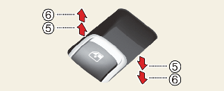 لفتح نافذة أو إغلاقها، اضغط على الجزء الأمامي من المفتاح المناظر إلى وضع الحاجز الأول (٥) أو اسحبه لأعلى.