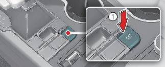 اضغط على زر الركن/الرؤية (1) أثناء وجود الترس في الوضع P (ركن) أو D (قيادة) أو N (محايد) لتشغيل مراقب الرؤية الخلفية.