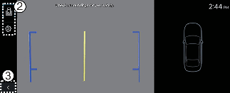 يمكنك تحديد الرؤية الخلفية أو الرؤية الخلفية الواسعة عن طريق الضغط على زر تبديل الرؤية (2) على الشاشة الخلفية.