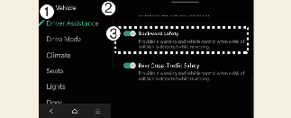 سيتم تحديد الأمان الخلفي، ويتم الاحتفاظ بإعدادات مساعد تجنّب الاصطدام أثناء الركن عند إعادة تشغيل السيارة.