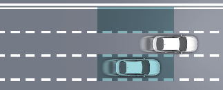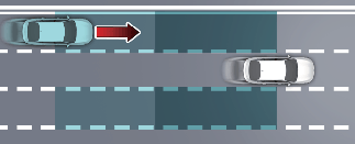 يساعد نظام المساعدة على تجنب الاصطدام في المنطقة المحجوبة على اكتشاف وجود مركبة في المنطقة المحجوبة ويُعلم السائق بذلك.