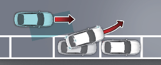 عند القيادة إلى الأمام للخروج من مساحة الركن، إذا اكتشف نظام المساعدة على تجنب الاصطدام في المنطقة المحجوبة وجود خطر تصادم مع مركبة قريبة من المنطقة المحجوبة، سيساعد على تجنب التصادم من خلال استخدام الفرامل.