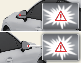 سوف يومض مصباح التحذير الموجود على مرآة الرؤية الجانبية وستظهر رسالة التحذير على مجموعة العدادات، وسيصدر تحذير صوتي.