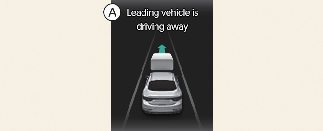 عندما تغادر سيارة تم اكتشافها أمامك من نقطة وقوف، سيُخطر إنذار مغادرة المركبة الأمامية السائق بعرض رسالة التحذير على لوحة العدادات وسيصدر تحذير صوتي.