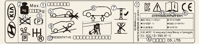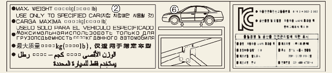 * قد يختلف ملصق الرافعة الفعلي في السيارة عن الرسم التوضيحي. للحصول على مزيد من المواصفات التفصيلية، راجع الملصق المرفق مع المرفاع.
