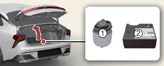 يُستخدم طقم إصلاح الإطار المثقوب باعتباره حلاً مؤقتًا لإصلاح الإطار، وعليك فحص النظام لدى ورشة محترفة. تُوصي Kia بزيارة أحد شركاء خدمة/وكلاء Kia المعتمدين.