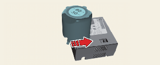 أدخل زجاجة مانع التسرب في مبيت (٥) الضاغط بحيث يكون اتجاه الزجاجة لأعلى.