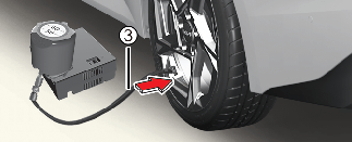 تنبيهلا تقم بتوصيل طقم إصلاح الإطارات المحمول (TMK) لمركبة أخرى بمنفذ الطاقة أو طرف البطارية. يمكن أن تتسبب متطلبات الطاقة غير الملائمة بين منفذ طاقة السيارة وطقم خدمة تنقل الإطارات في نشوب حريق أو تلف الدائرة داخل السيارة وإتلاف طقم خدمة تنقل الإطارات.